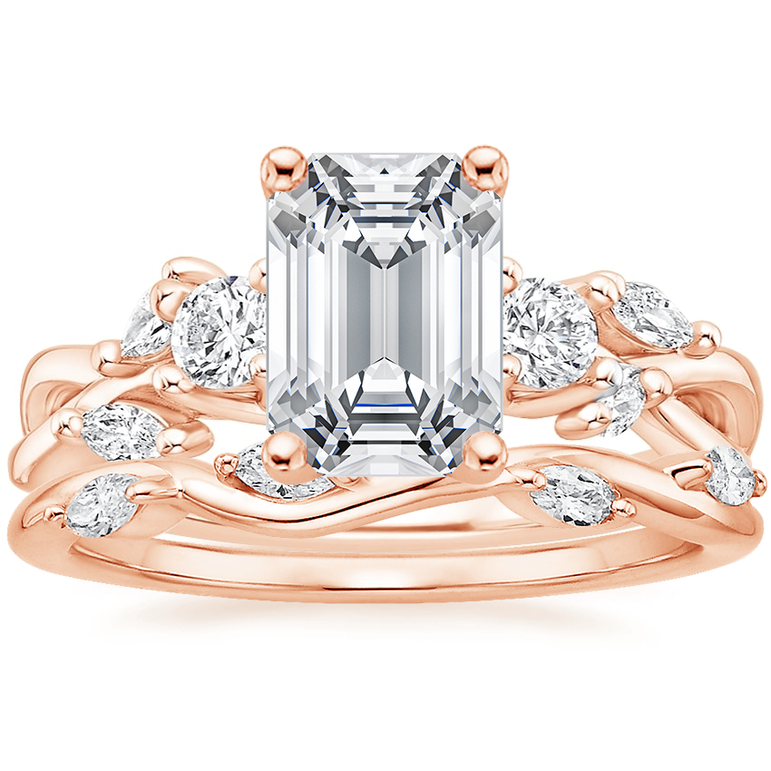 14K Rose Gold Three Stone Willow Diamond Ring (1/3 ct. tw.) with Winding Willow Diamond Ring