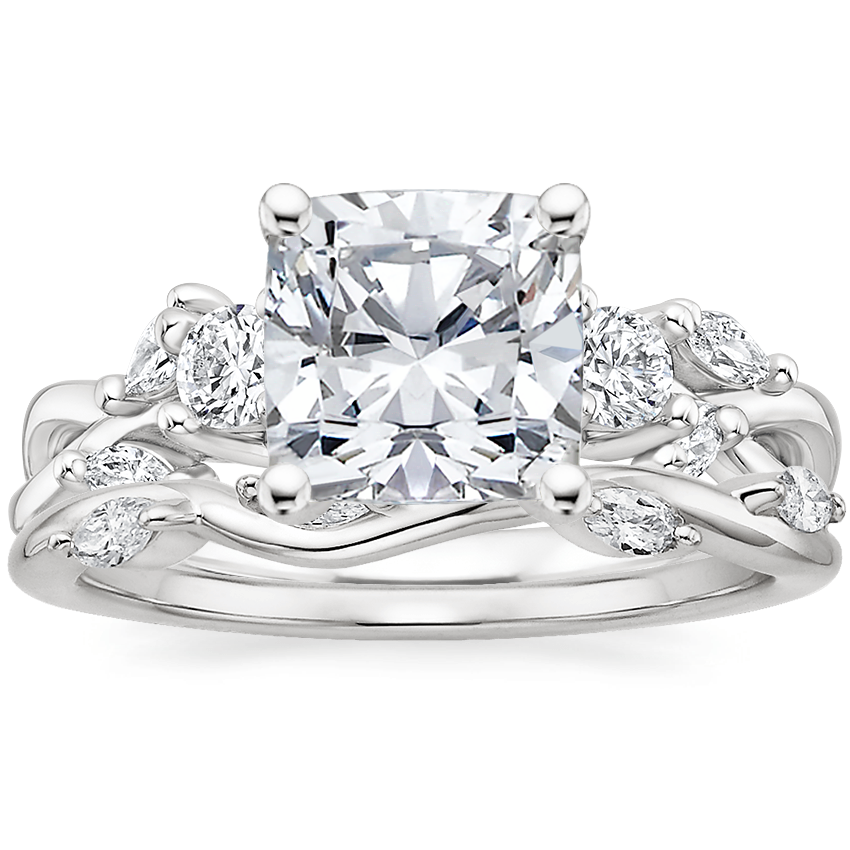 Three Stone Willow Diamond Ring (1/3 ct. tw.) with Winding Willow Diamond Ring in 18K White Gold