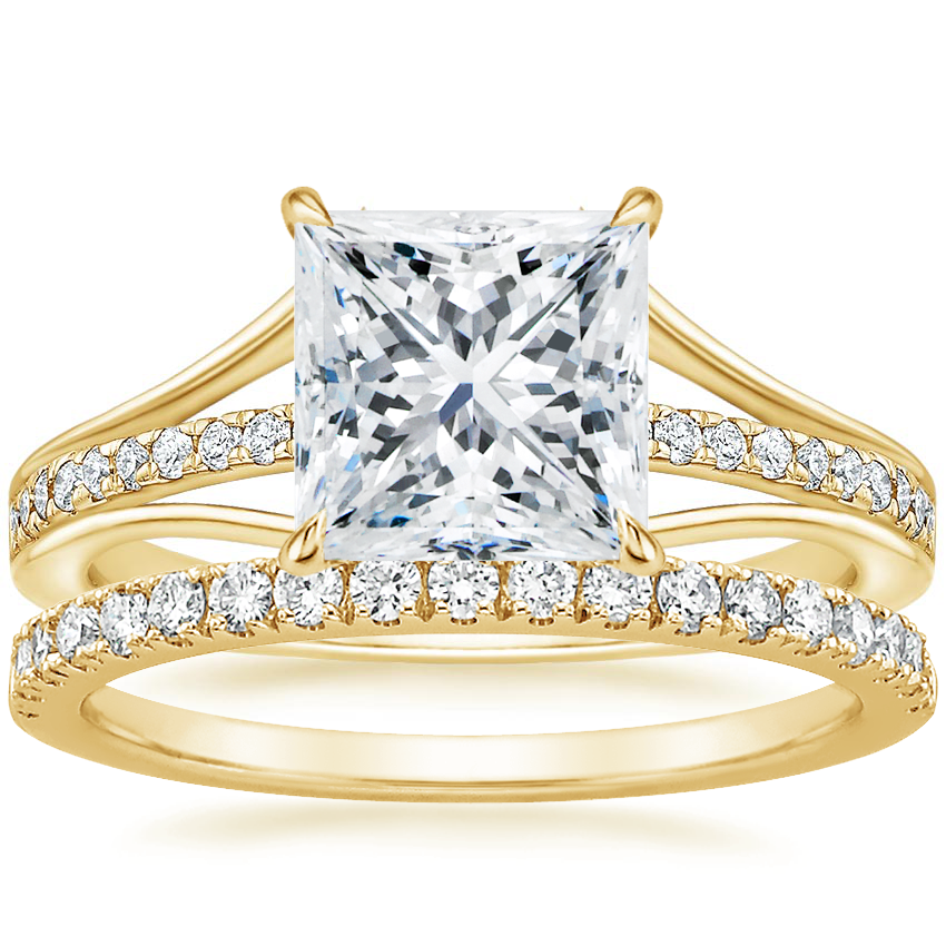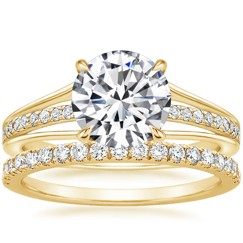 18K Yellow Gold Tressa Split Shank Diamond Ring with Bliss Diamond Ring (1/5 ct. tw.)