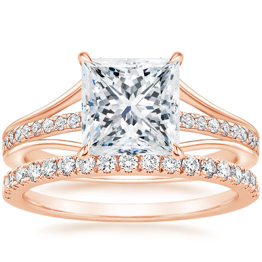14K Rose Gold Tressa Split Shank Diamond Ring with Bliss Diamond Ring (1/5 ct. tw.)
