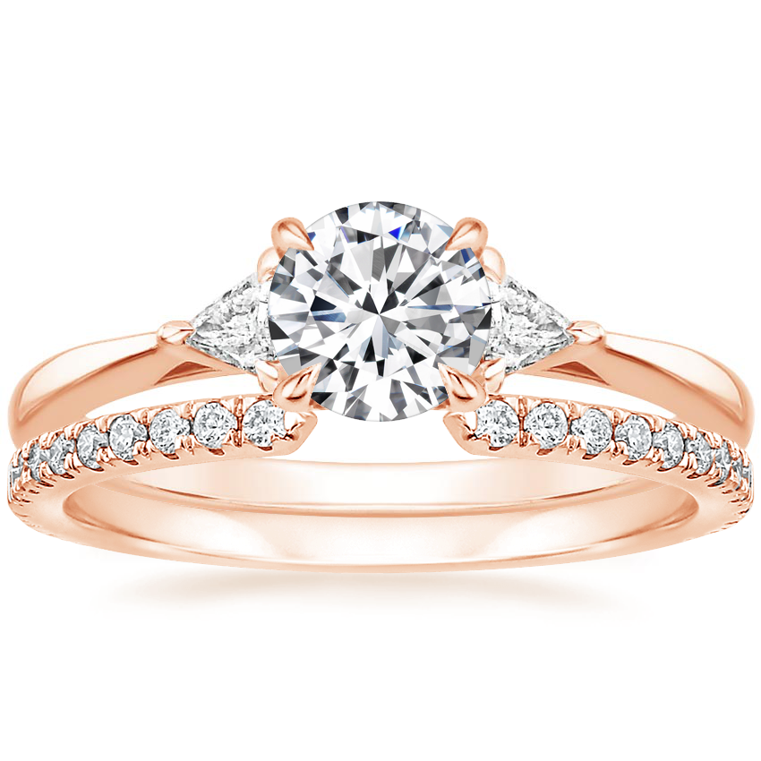 14K Rose Gold Trillion Three Stone Diamond Ring with Luxe Sia Diamond Open Ring (1/5 ct. tw.)