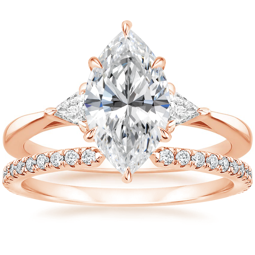 14K Rose Gold Trillion Three Stone Diamond Ring with Luxe Sia Diamond Open Ring (1/5 ct. tw.)