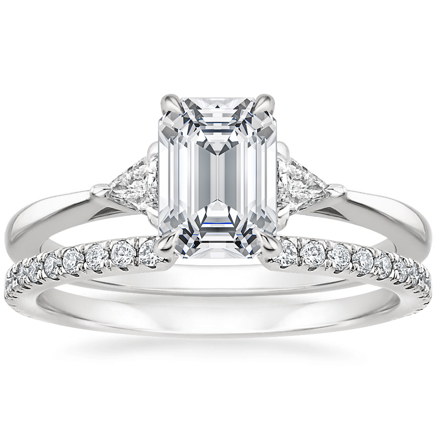 18K White Gold Trillion Three Stone Diamond Ring with Luxe Sia Diamond Open Ring (1/5 ct. tw.)