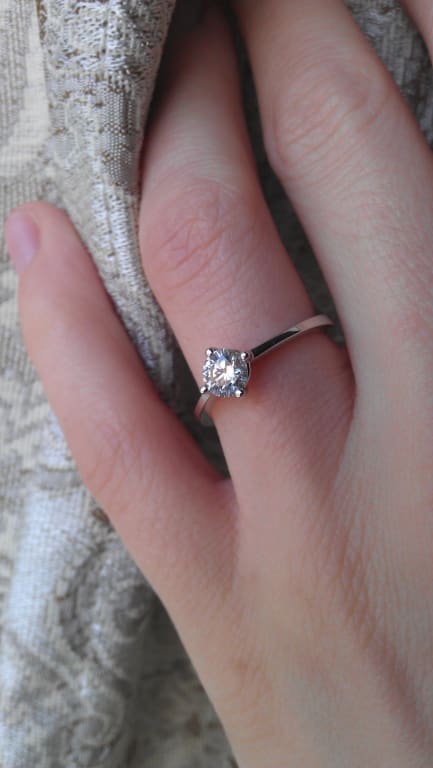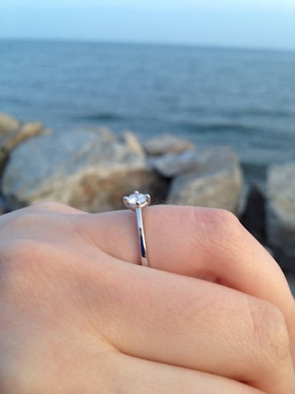 My boyfriend (...fiancé) just proposed this weekend. This ring is beautiful! The pictures do not do it justice. It is very thin with a delicate, simple elegance. 0.3 carats is the perfect size. He couldn't have picked out a better ring!