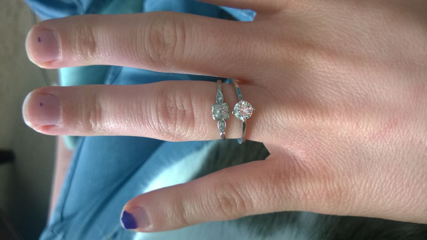 I wanted to have an engagement ring that wasn't too over the top but also wasn't the typical solitaire setting. When I found this compass point setting, I was drawn to it. My SO liked the look of it as well. I also like that my brother said it looked "celestial," and I told him it is like "the star of the north" (MN state motto). It is elegant and simple but it is also different. I love the way this ring looks and am proud to wear it. I can't stop looking at it. My only drawback is that the band is squareish, so it isn't the most comfortable band, but it isn't uncomfortable. That being said, I chose not to purchase the "comfort band," because I wanted something a little different. It sits comfortably on my finger and sparkles and will match with everything. I attached a photo of me wearing this ring and my promise ring, an art deco ring with an old miner's cut and thinner band, to show the contrast. I am very satisfied with this ring.
