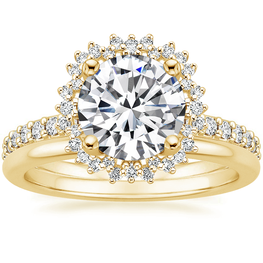 18K Yellow Gold Twilight Diamond Ring with Petite Comfort Fit Wedding Ring