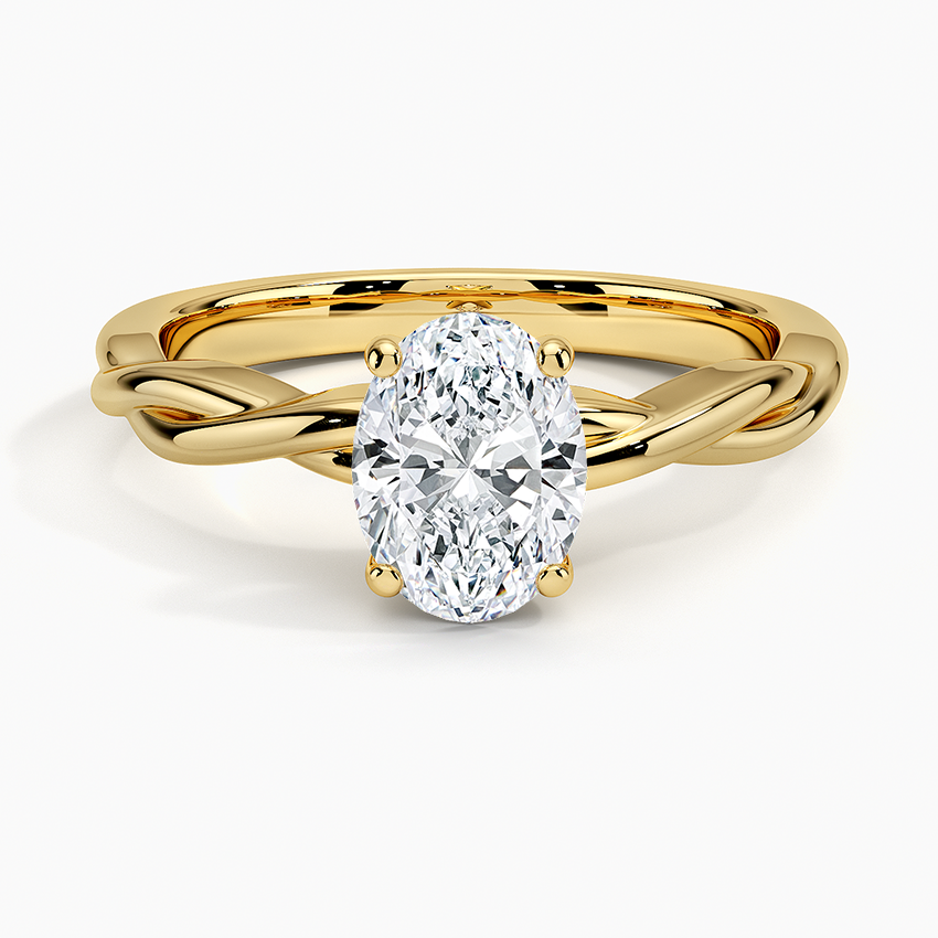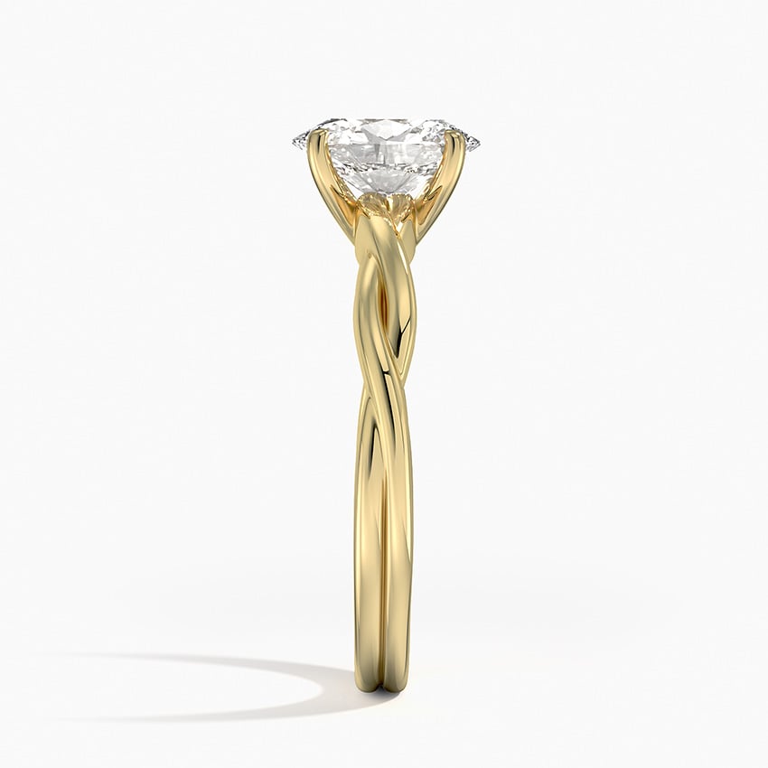 This nature-inspired solitaire design features two delicate intertwined strands of high polish precious metal. The look provides the perfect showcase for a dazzling center gemstone secured by a classic four-prong setting.