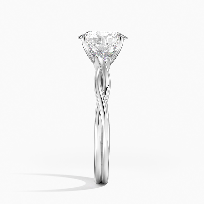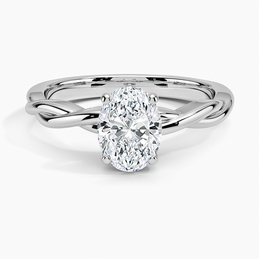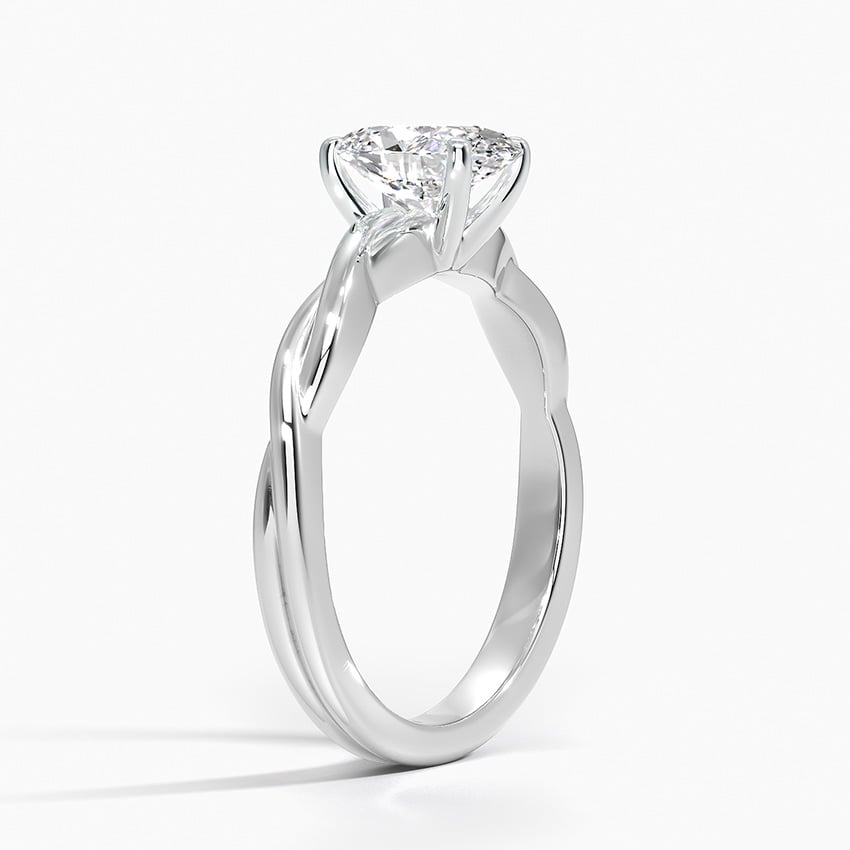 This nature-inspired solitaire design features two delicate intertwined strands of high polish precious metal. The look provides the perfect showcase for a dazzling center gemstone secured by a classic four-prong setting.