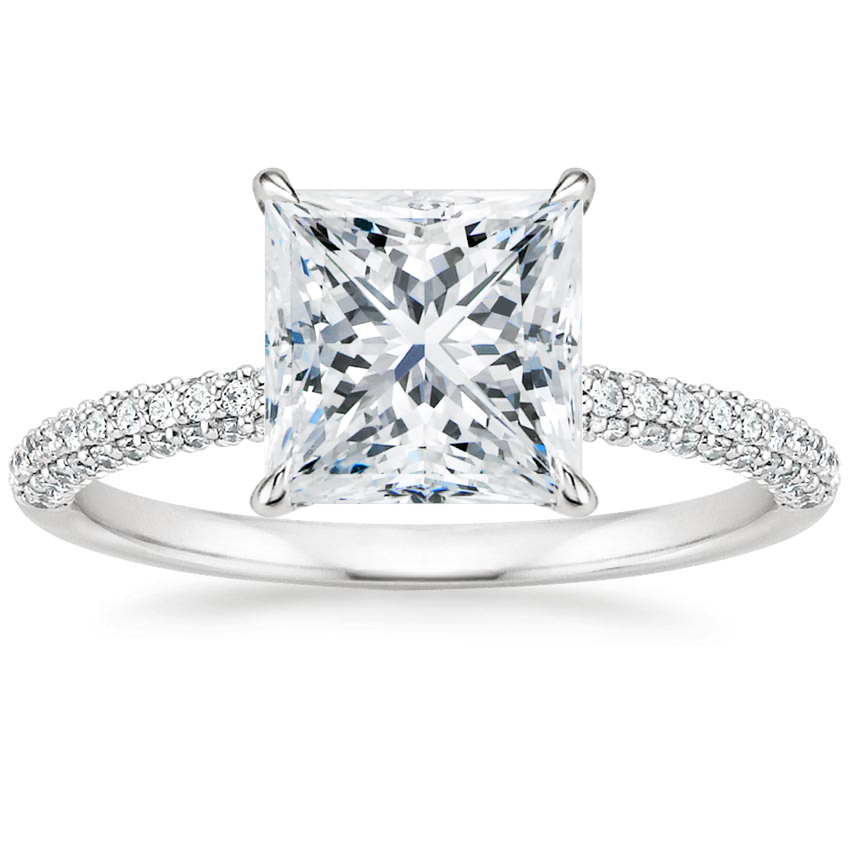 I can't even put into words how much I love this ring. I have gotten unending compliments about it since my fiancé gave it to me. The round cut stone truly sparkles in this setting. Originally I wanted a simple setting, which this is, but the intricacies of the small pave diamonds in the band AND up the side of the prong settings is just stunning. It's the exact kind of detail that makes it beautiful without taking away from the diamond. The prongs are also sturdy but don't get in the way too much visually, which I like. The ring fits beautifully and doesn't hurt when I shake people's hands, although that's with a 6.25 size. My fiancé couldn't have picked a more beautiful, elegant ring. I also love that the diamond is man-made. Beautiful and ethical!