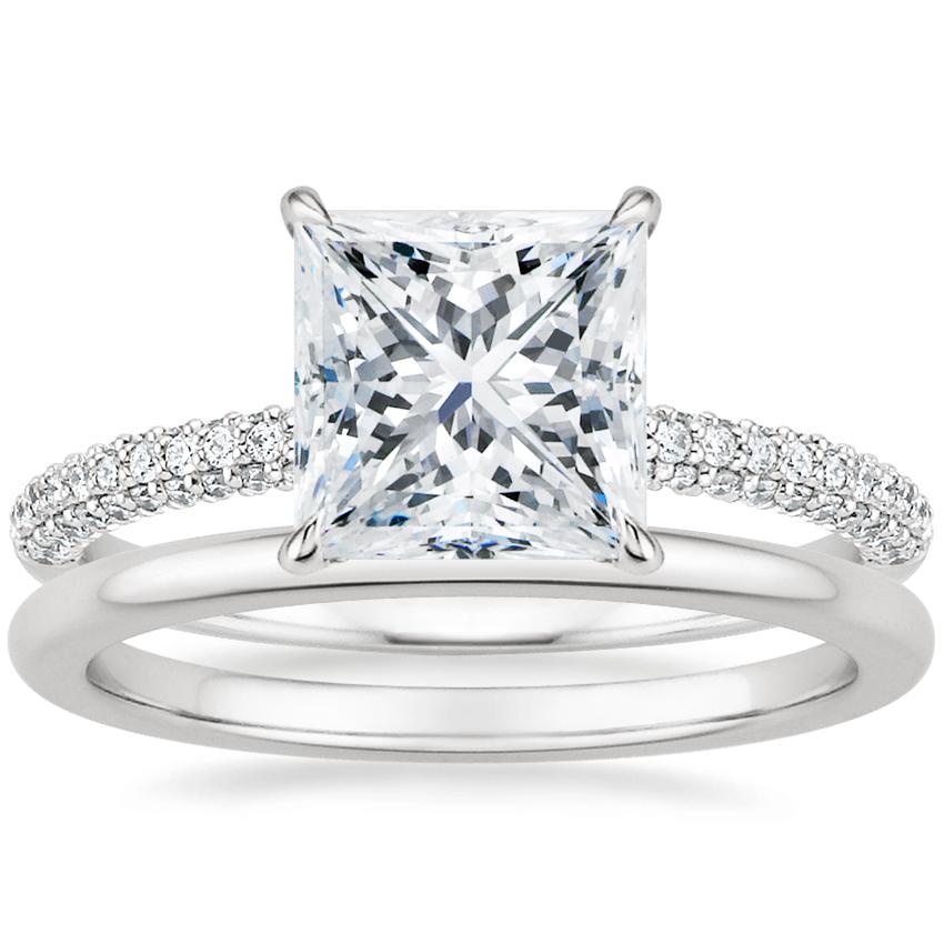 18K White Gold Valencia Diamond Ring with Petite Comfort Fit Wedding Ring