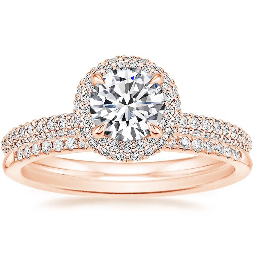 14K Rose Gold Valencia Halo Diamond Ring (1/2 ct. tw.) with Whisper Diamond Ring (1/10 ct. tw.)