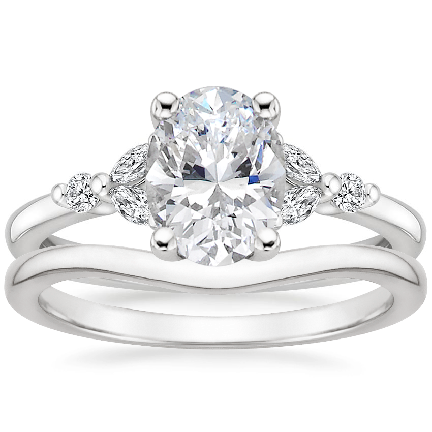 18K White Gold Verbena Diamond Ring with Petite Curved Wedding Ring
