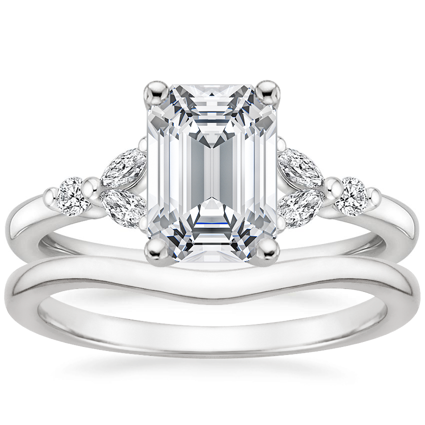 18K White Gold Verbena Diamond Ring with Petite Curved Wedding Ring