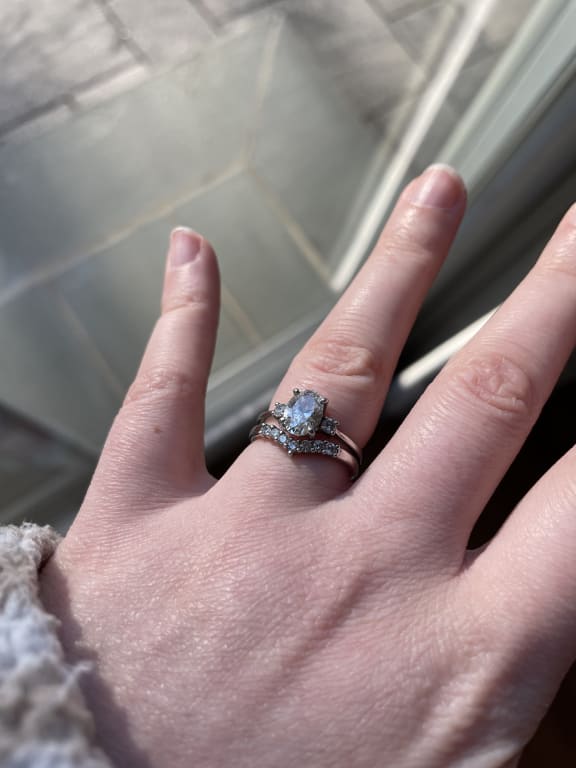 My husband bought two of these beautiful anniversary rings as an anniversary gift. Put one in the front and back of my engagement ring and it looks absolutely stunning. ...Read More