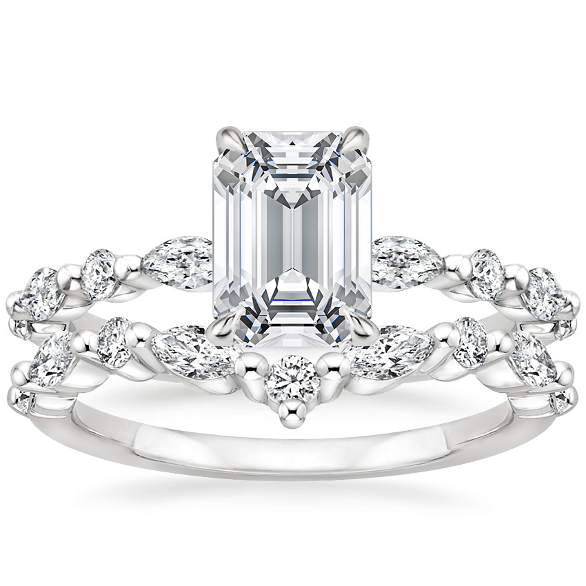 Platinum Versailles Hidden Halo Diamond Ring with Curved Versailles Diamond Ring with 0.75 Carat Emerald Diamond