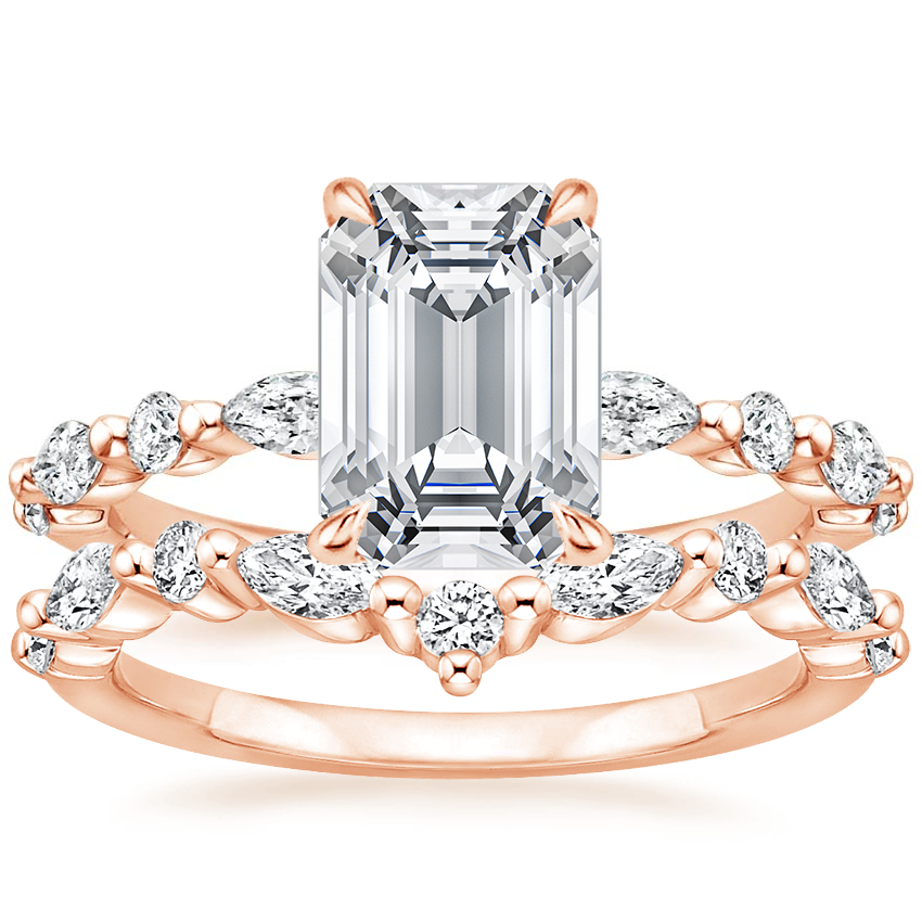 14K Rose Gold Versailles Hidden Halo Diamond Ring with Curved Versailles Diamond Ring