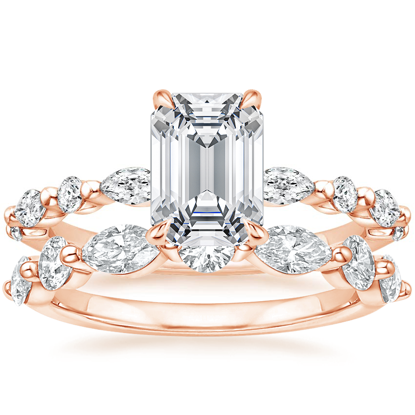 14K Rose Gold Versailles Hidden Halo Diamond Ring with Grand Versailles Diamond Ring (1 ct. tw.) with 0.75 Carat Emerald Diamond