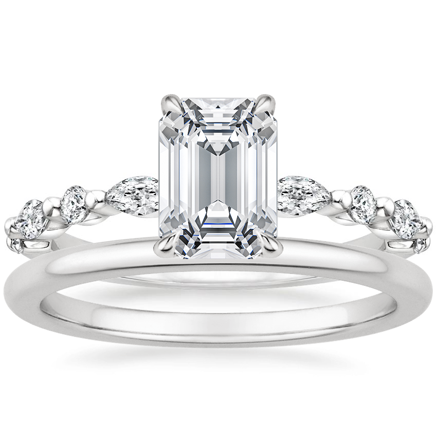 Platinum Versailles Hidden Halo Diamond Ring with Petite Comfort Fit Wedding Ring with 0.75 Carat Emerald Diamond