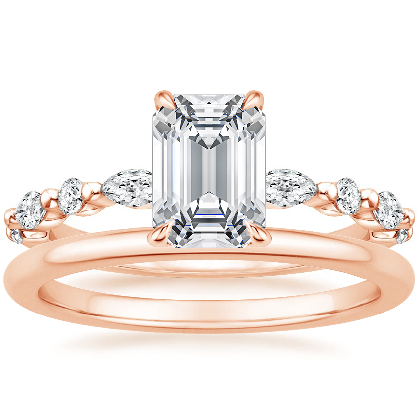 14K Rose Gold Versailles Hidden Halo Diamond Ring with Petite Comfort Fit Wedding Ring with 0.75 Carat Emerald Diamond