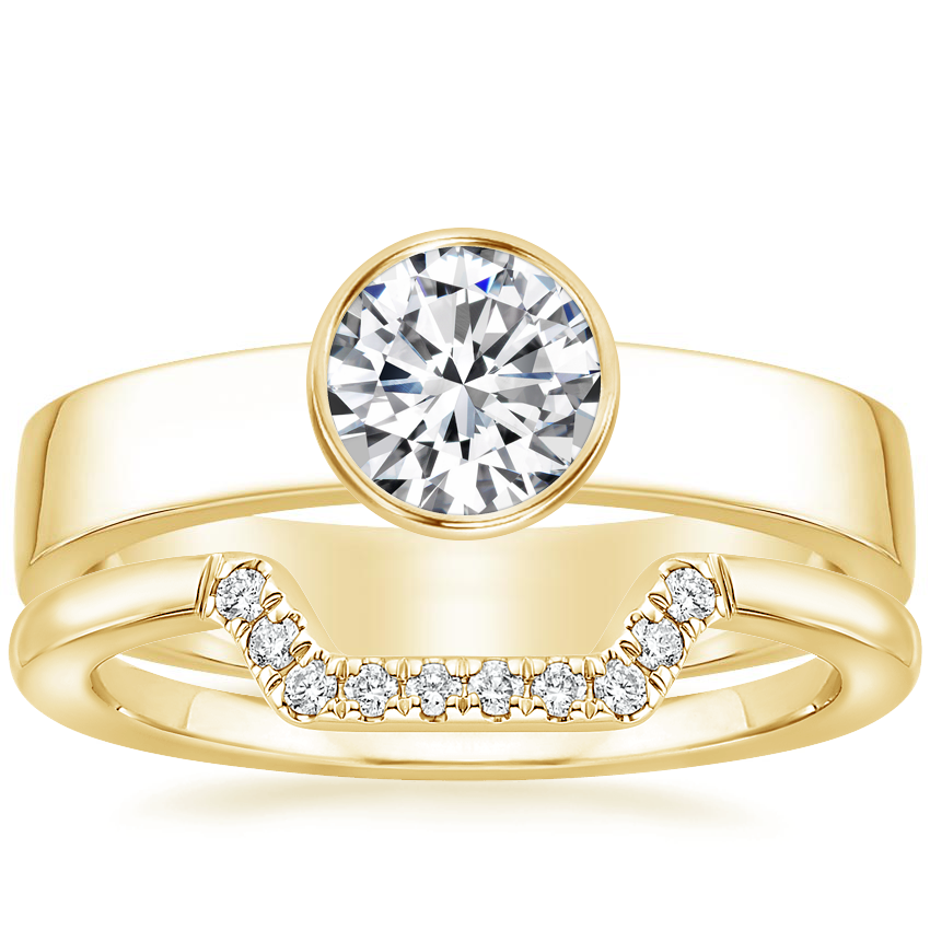 18K Yellow Gold Vesper Ring with Midi Linear Nesting Diamond Ring