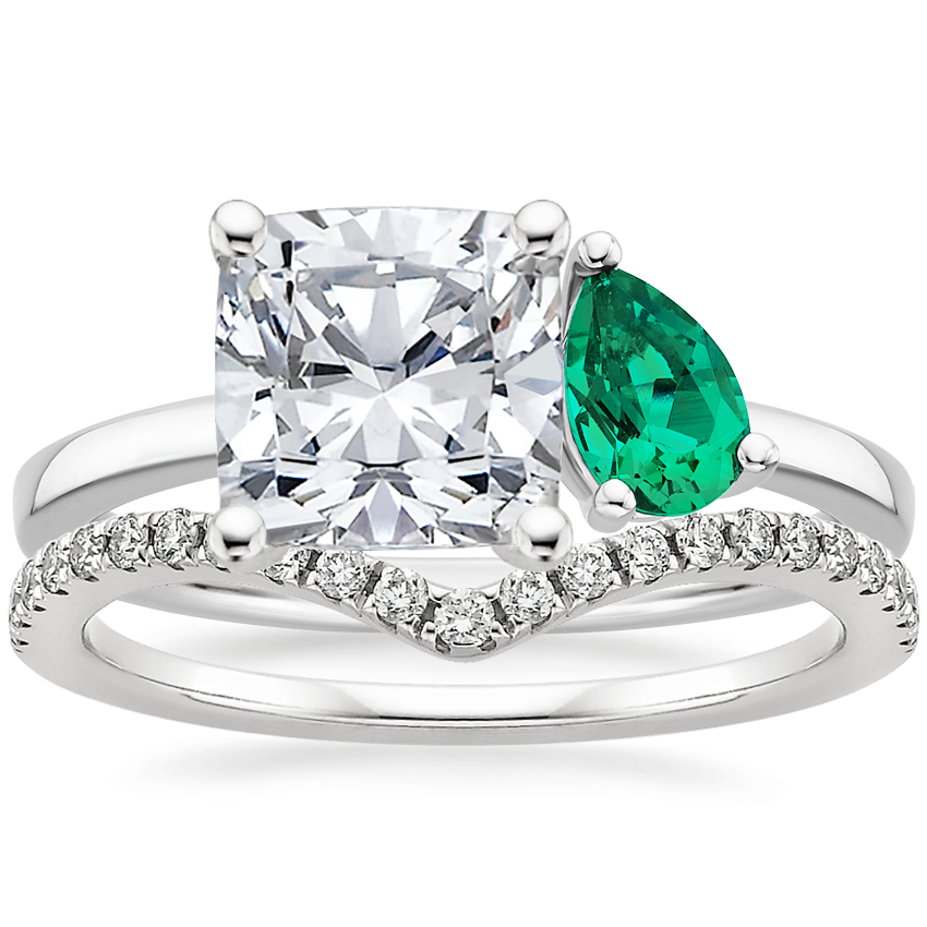 Platinum Viridian Toi et Moi Diamond Ring with Flair Diamond Ring (1/6 ct. tw.) with 1.97 Carat Cushion Lab Grown Diamond
