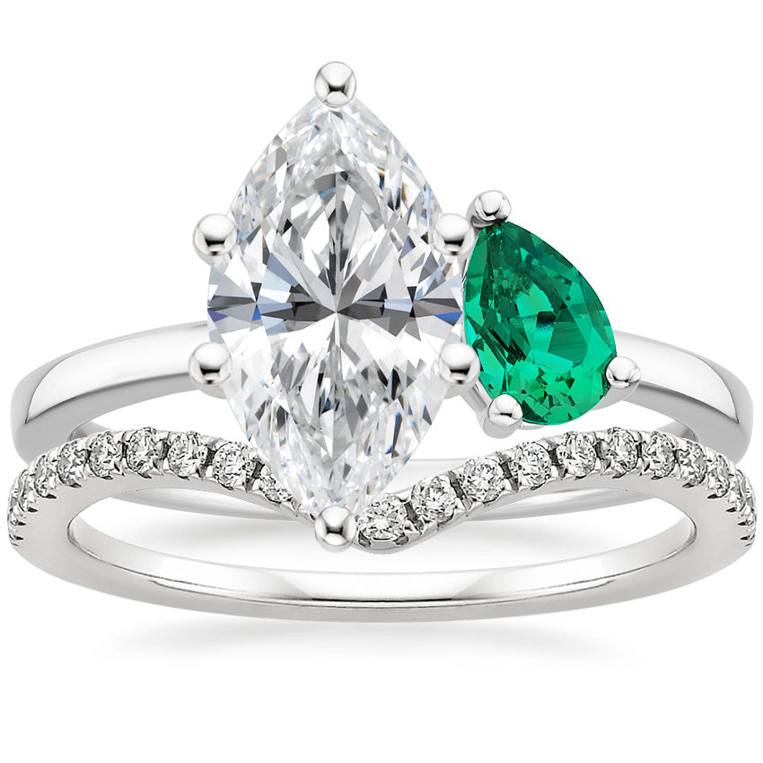 Platinum Viridian Toi et Moi Diamond Ring with Flair Diamond Ring (1/6 ct. tw.)