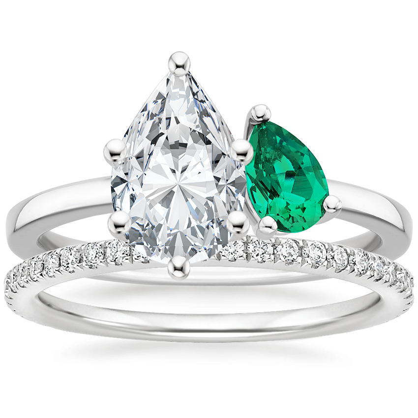 Platinum Viridian Toi et Moi Diamond Ring with Luxe Ballad Diamond Ring (1/4 ct. tw.)