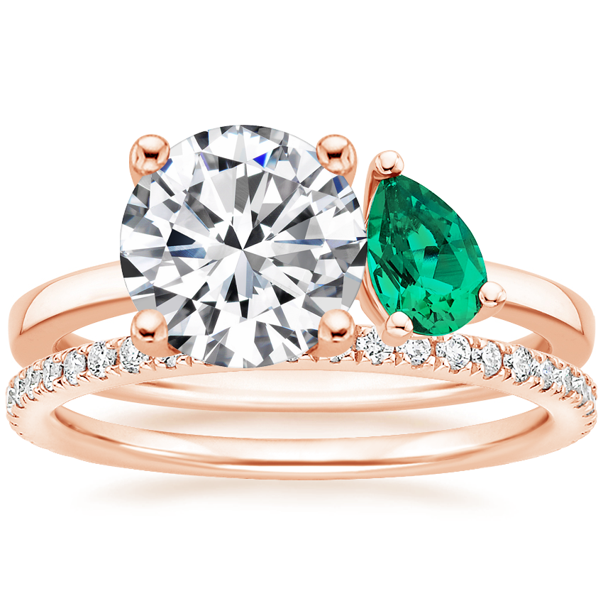 14K Rose Gold Viridian Toi et Moi Diamond Ring with Luxe Ballad Diamond Ring (1/4 ct. tw.)