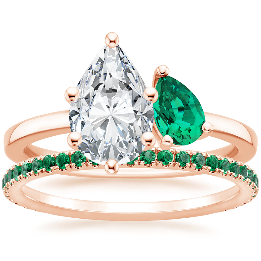 14K Rose Gold Viridian Toi et Moi Diamond Ring with Luxe Ballad Emerald Ring