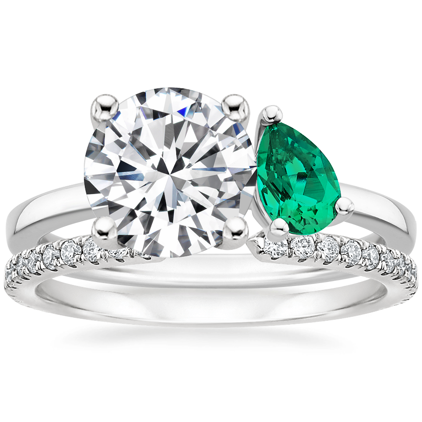 Platinum Viridian Toi et Moi Diamond Ring with Luxe Sia Diamond Open Ring (1/5 ct. tw.)