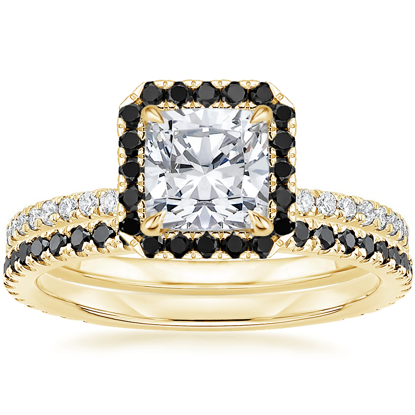 Waverly Diamond Ring with Black Diamond Accents with Luxe Ballad Black Diamond Ring in 18K Yellow Gold