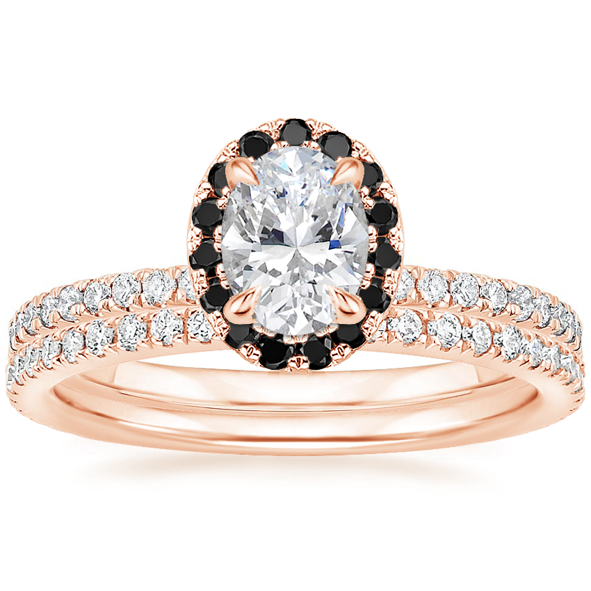 14K Rose Gold Waverly Diamond Ring with Black Diamond Accents with Luxe Ballad Diamond Ring with 3.01 Carat Oval Lab Grown Diamond