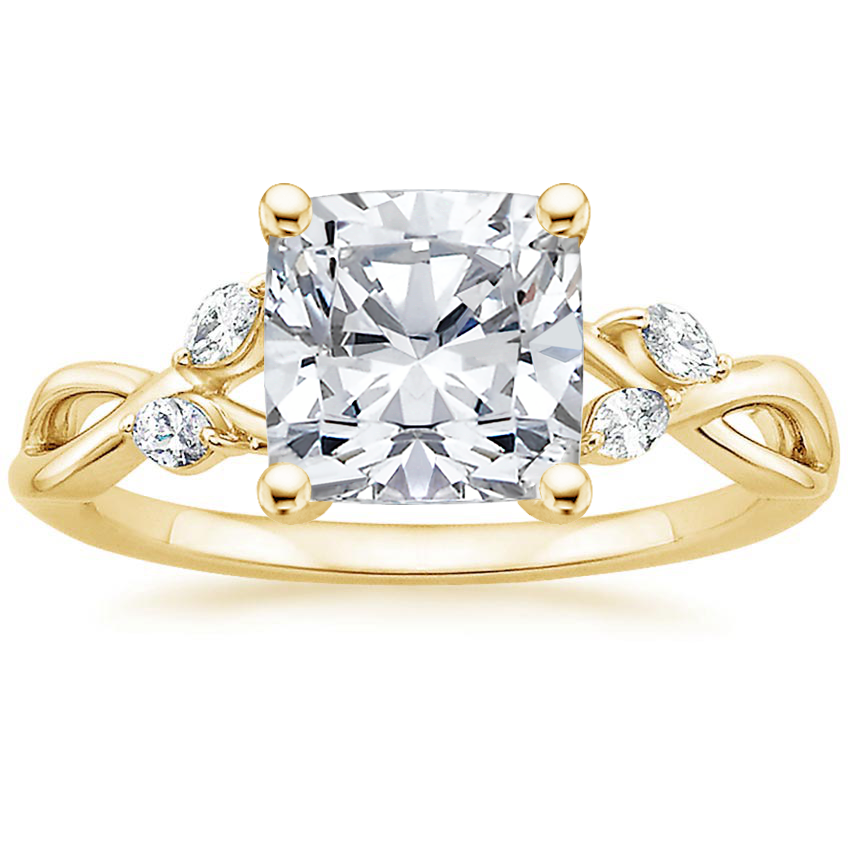 18K Yellow Gold Willow Diamond Ring (1/8 ct. tw.) with Winding Willow Diamond Ring (1/8 ct. tw.) with 2.02 Carat Cushion Diamond