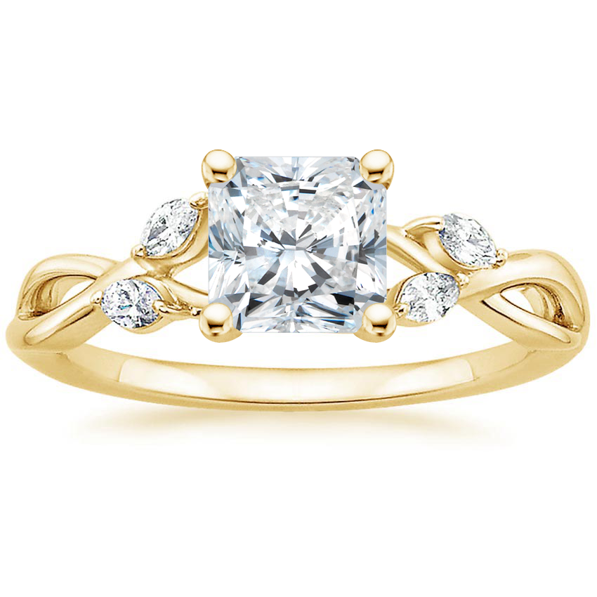 18K Yellow Gold Willow Diamond Ring (1/8 ct. tw.) with Winding Willow Diamond Ring (1/8 ct. tw.) with 0.51 Carat Radiant Diamond