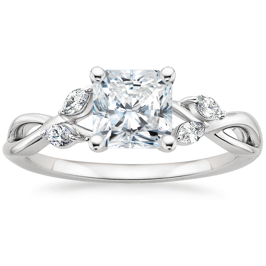 Platinum Willow Diamond Ring (1/8 ct. tw.) with Winding Willow Diamond Ring (1/8 ct. tw.) with 0.51 Carat Radiant Diamond