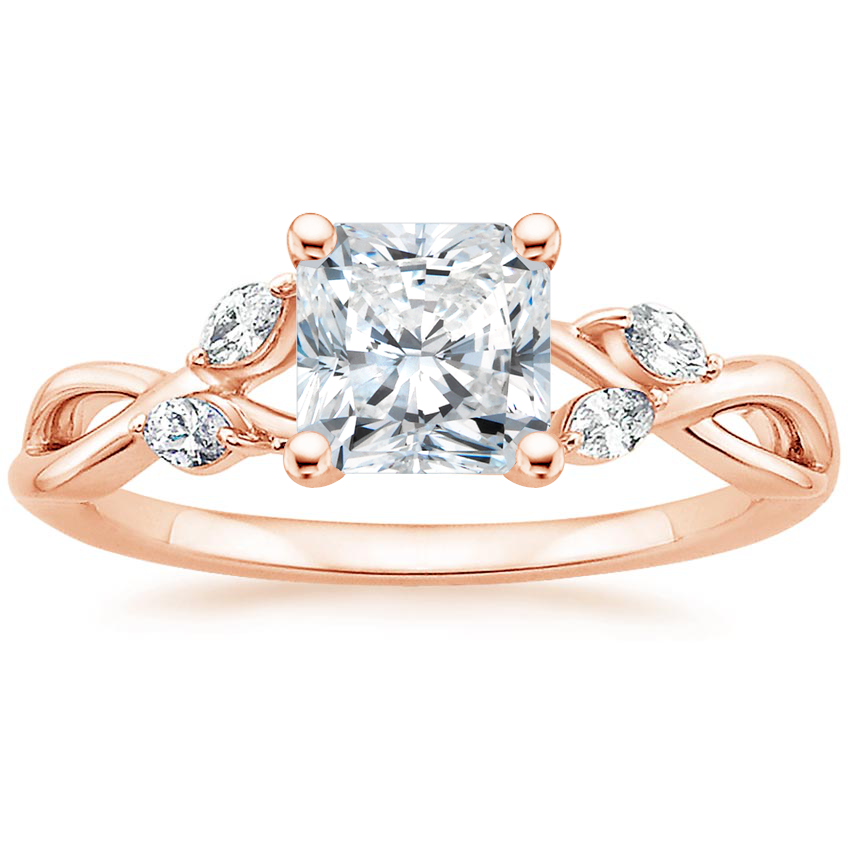 14K Rose Gold Willow Diamond Ring (1/8 ct. tw.) with Winding Willow Diamond Ring (1/8 ct. tw.) with 0.51 Carat Radiant Diamond