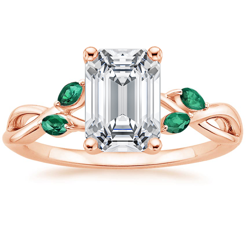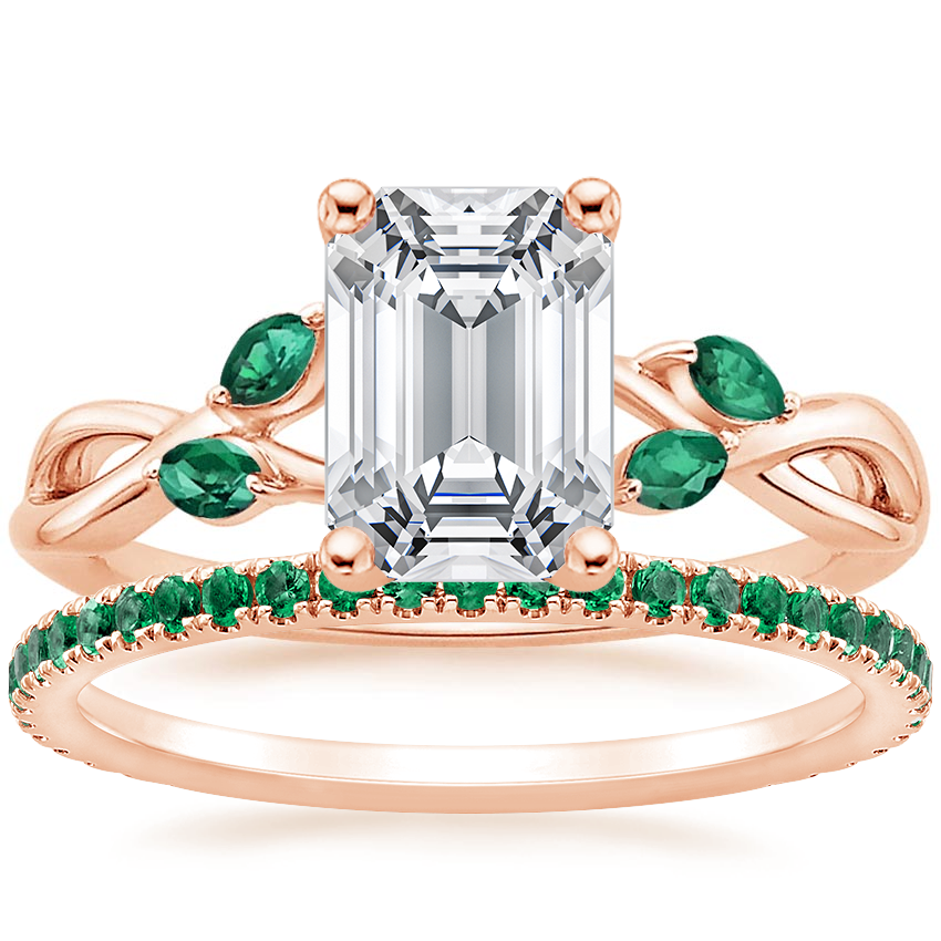 14K Rose Gold Willow Ring With Lab Emerald Accents with Luxe Ballad Emerald Ring