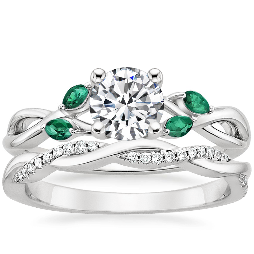 Platinum Willow Ring With Lab Emerald Accents with Petite Twisted Vine Diamond Ring (1/8 ct. tw.)