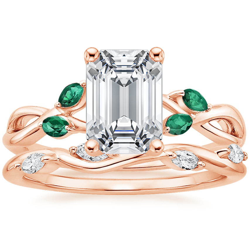 14K Rose Gold Willow Ring With Lab Emerald Accents with Winding Willow Diamond Ring (1/8 ct. tw.)