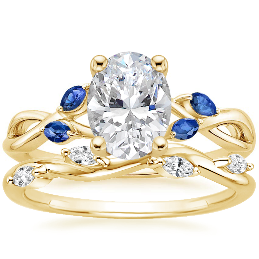 18K Yellow Gold Willow Ring With Sapphire Accents with Winding Willow Diamond Ring (1/8 ct. tw.)