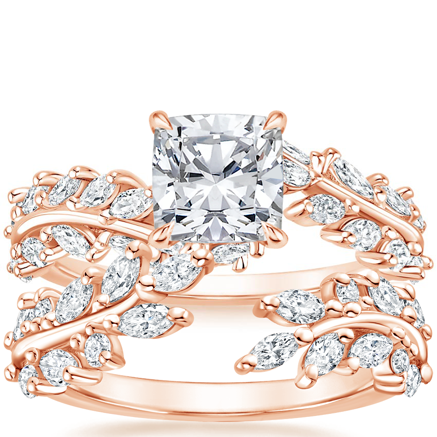 14K Rose Gold Winding Ivy Diamond Ring (3/4 ct. tw.) with Sweeping Ivy Diamond Ring (1/2 ct. tw.)