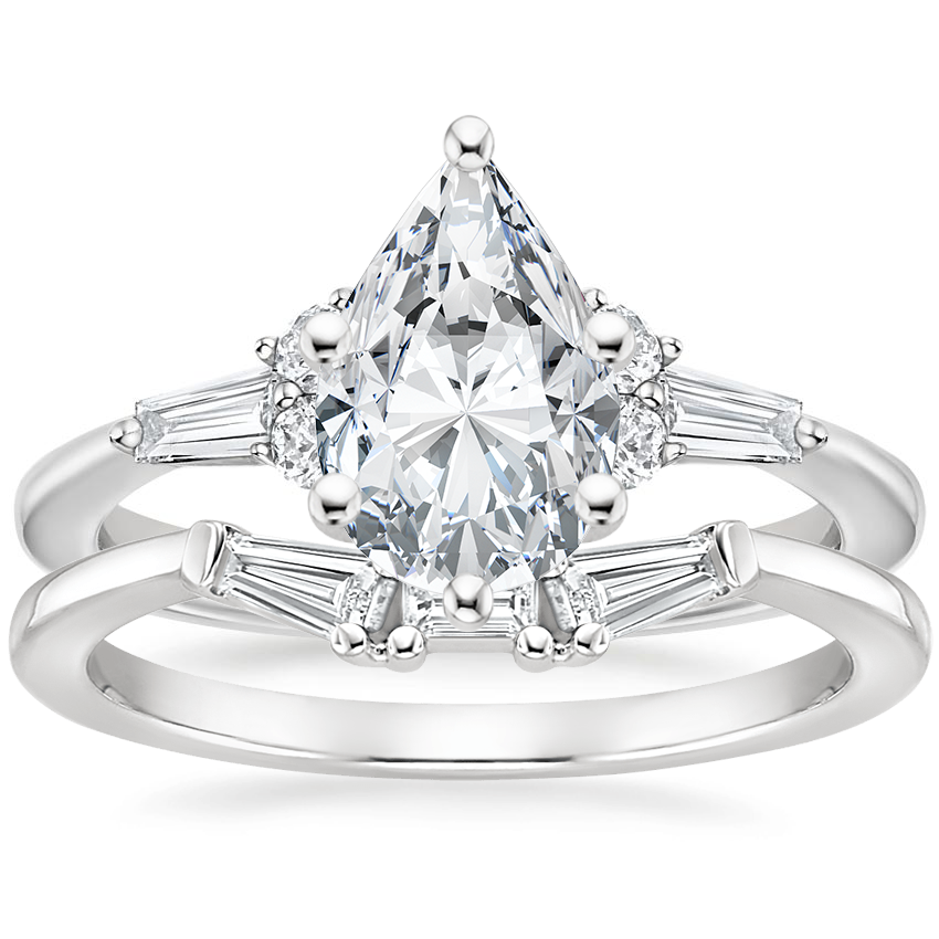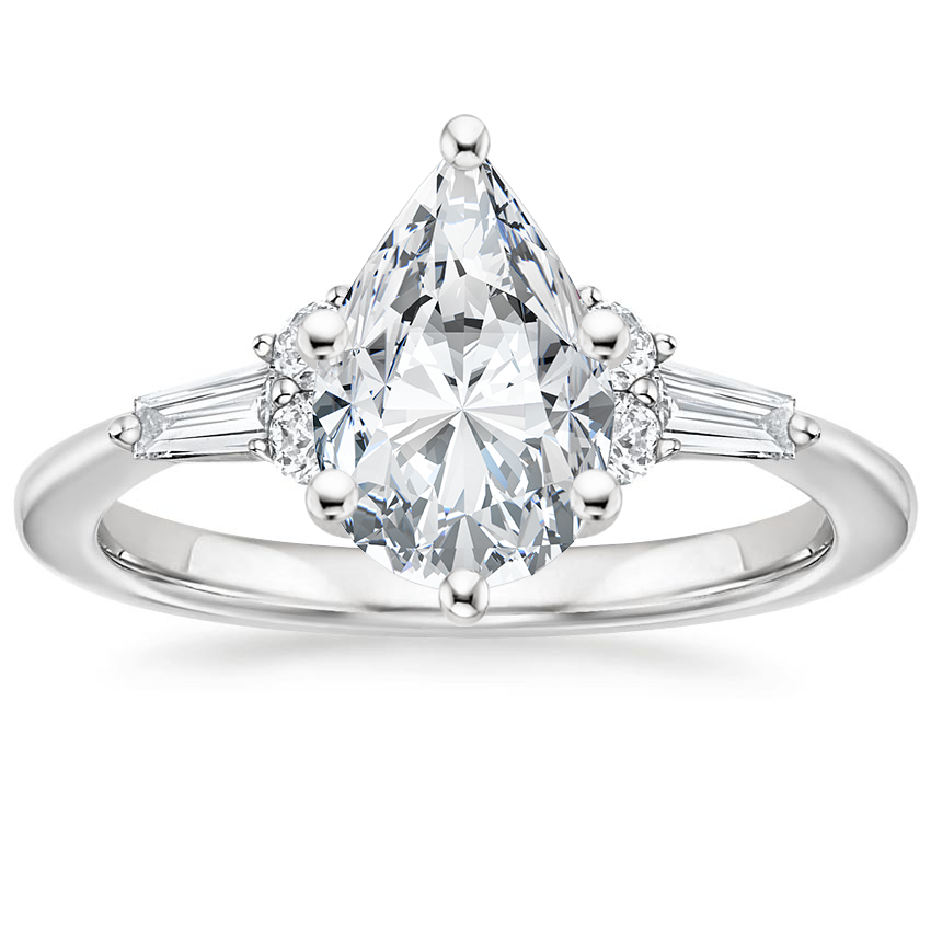 Yvonne Diamond Ring with Tapered Baguette Diamond Ring in 18K White Gold