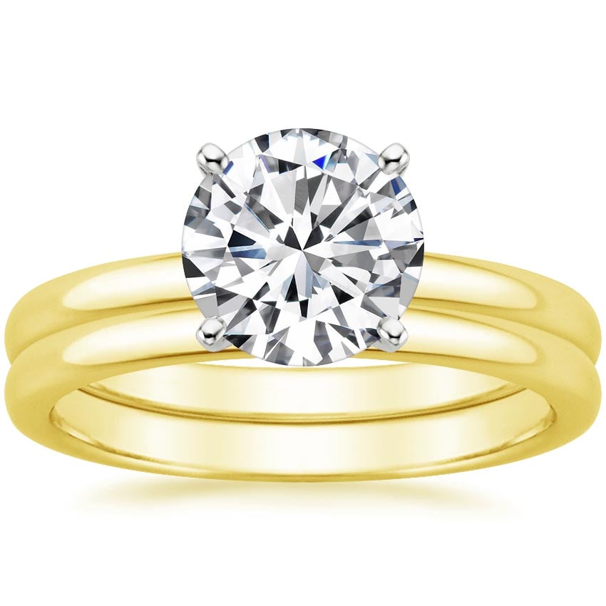 18K Yellow Gold 2mm Comfort Fit Bridal Set with 1.0 Carat Round Diamond