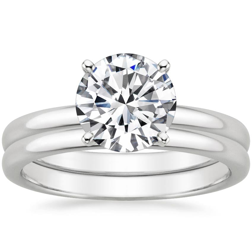18K White Gold 2mm Comfort Fit Bridal Set with 1.0 Carat Round Diamond