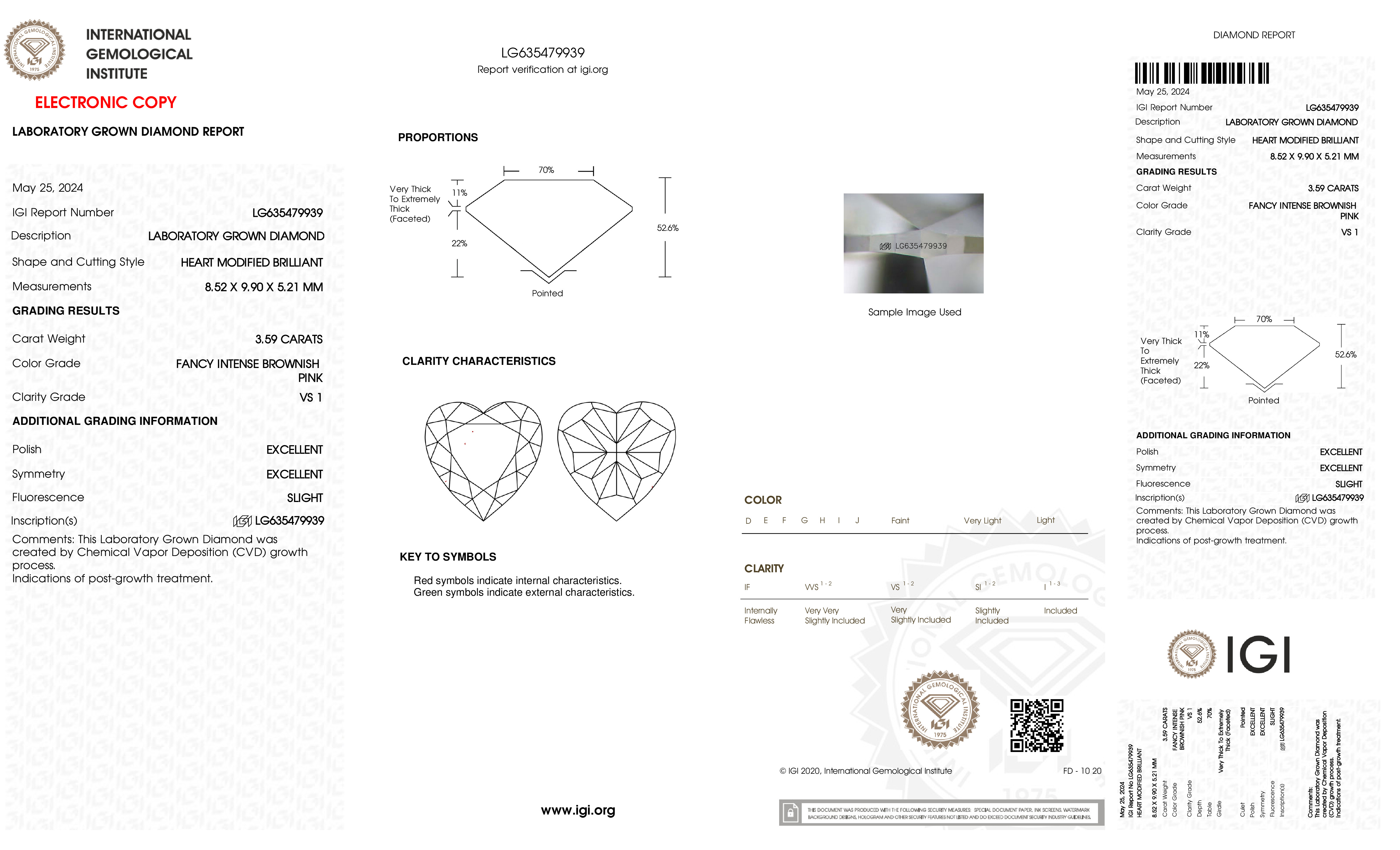 3.59 Ct. Fancy Intense Brownish Pink Heart Lab Grown Diamond