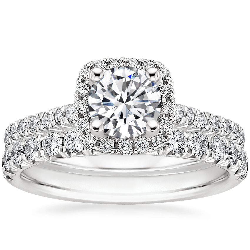 18K White Gold Adorned Odessa Diamond Ring (1/3 ct. tw.) with Sienna Diamond Ring (1/2 ct. tw.)