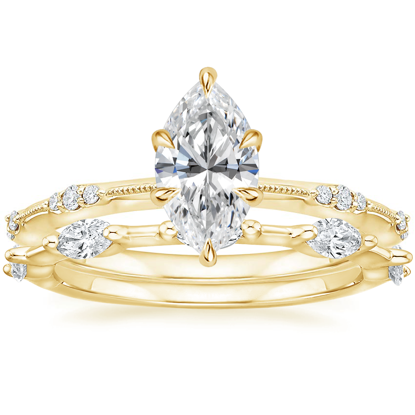 18K Yellow Gold Alena Diamond Ring with Aimee Marquise Diamond Ring (1/3 ct. tw.)