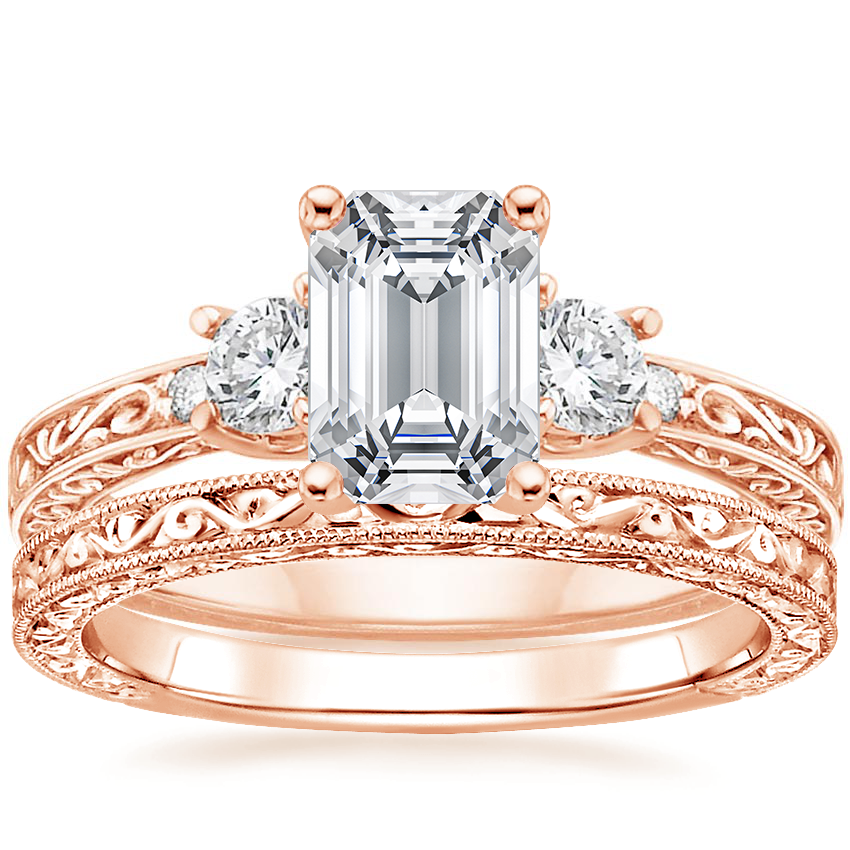 14K Rose Gold Antique Scroll Three Stone Trellis Diamond Ring (1/3 ct. tw.) with Hudson Ring