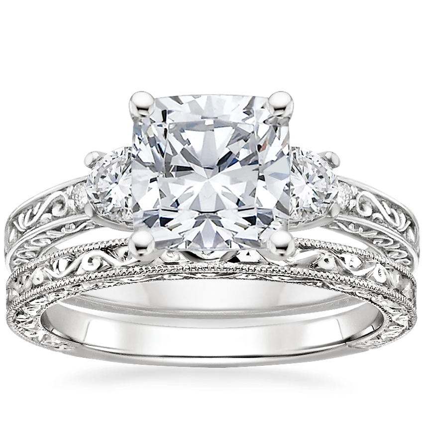 18K White Gold Antique Scroll Three Stone Trellis Diamond Ring (1/3 ct. tw.) with Hudson Ring