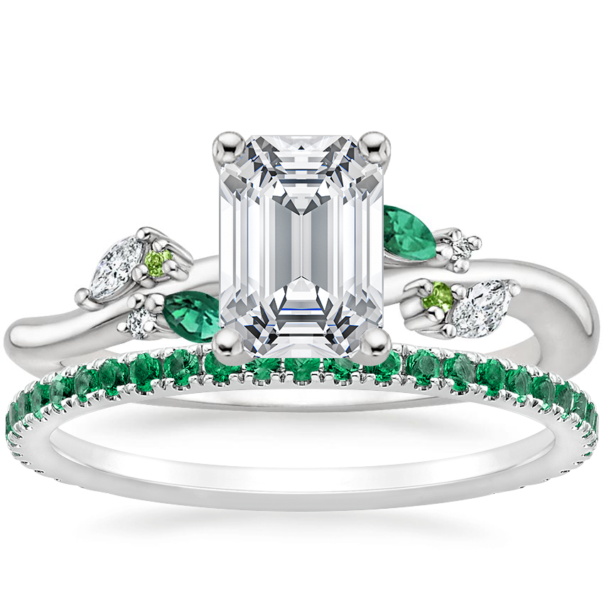 Platinum Arden Diamond Ring with Lab Emerald Accents with Luxe Ballad Emerald Ring